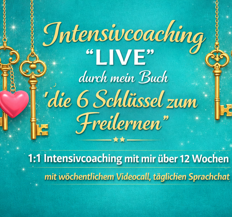 Wir starten mit einem Intensivcoaching zu meinem Buch " die 6 Schlüssel zum Freilernen" wo ich dich schrittweise persönlich als dein Mentalcoach durch alle Kapitel führe und dich liebevoll an die Hand nehme. Um gemeinsam mit Dir den Weg zu meistern in deinem ganz eigenem Tempo.